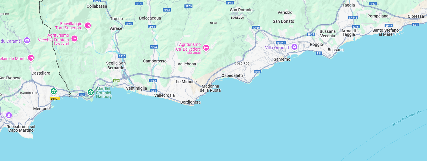 La nostra ditta con sede nel cuore della Riviera dei Fiori può facilmente intervenire in un’area geografica che dalla Marina di Aregai arriva fino al porto di Menton Garavan senza difficolta. Per interventi più remoti possiamo sempre trovare una soluzione adeguata.